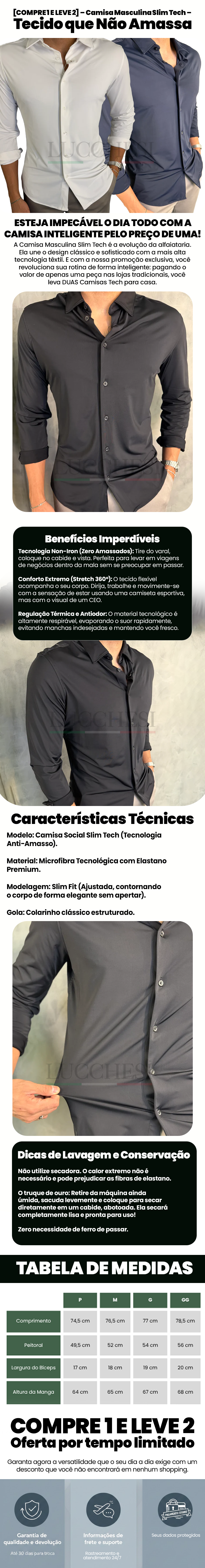 [COMPRE 1 E LEVE 2] – Camisa Masculina Slim Tech – Tecido que Não Amassa