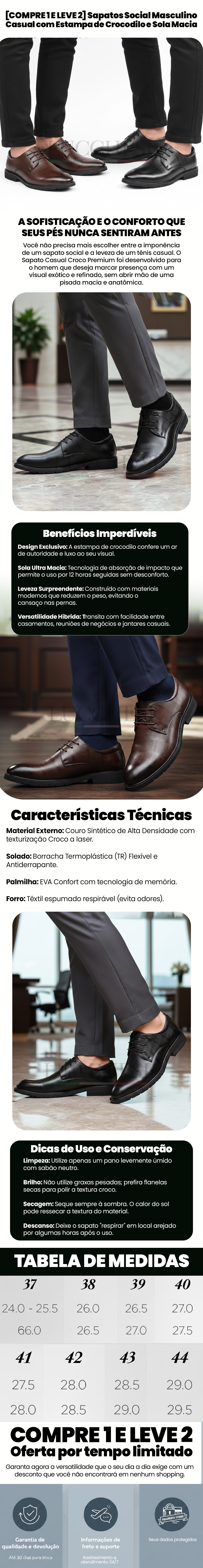 [COMPRE 1 E LEVE 2] Sapatos Social Masculino Casual com Estampa de Crocodilo e Sola Macia